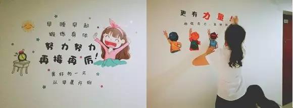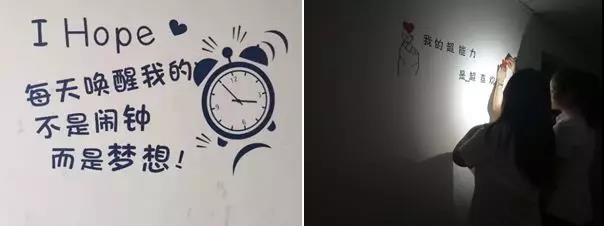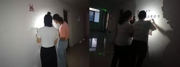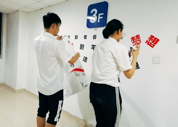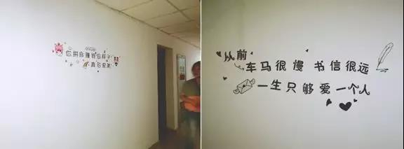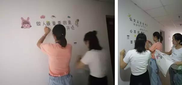 (經(jīng)過四個小時的通力合作,宿舍的白墻已經(jīng)換上美美的新裝啦)